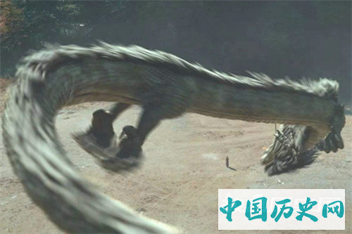 这条怪物很像传说中的“龙”。长约10米,身上覆盖着鳞甲,长着四爪,头上有两只1米多长的角,嘴角有很长的胡须,眼睛半睁半闭,看起来非常虚弱。
